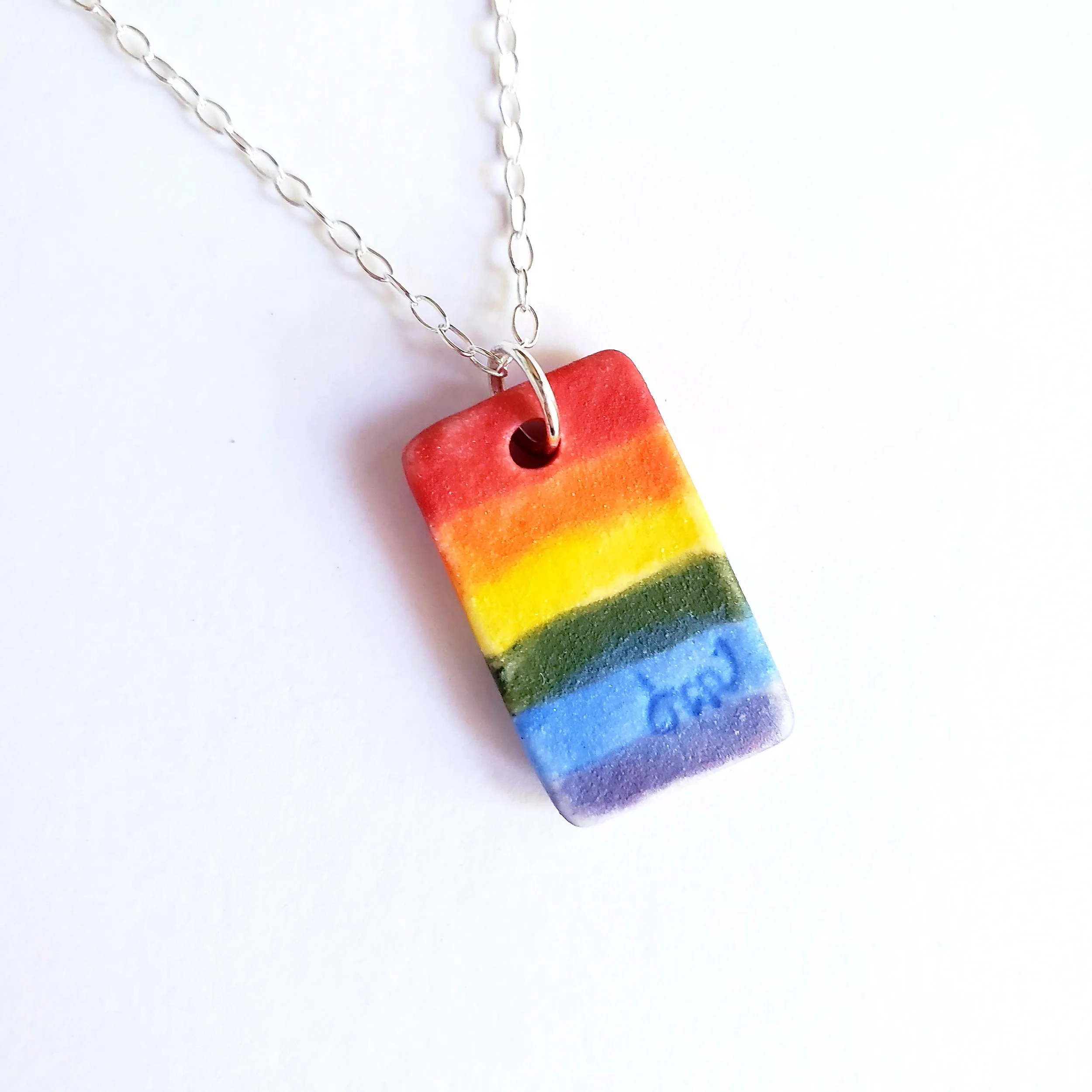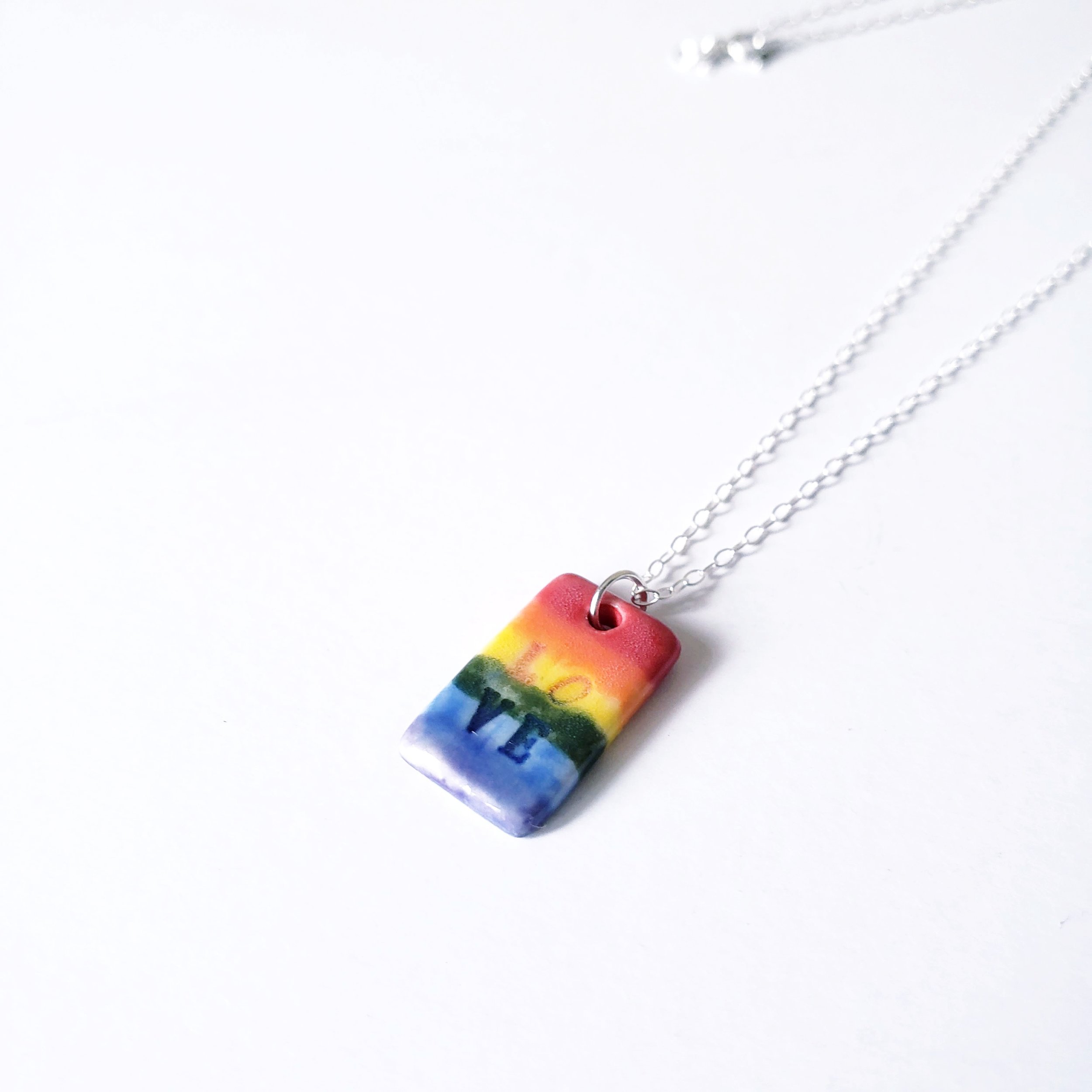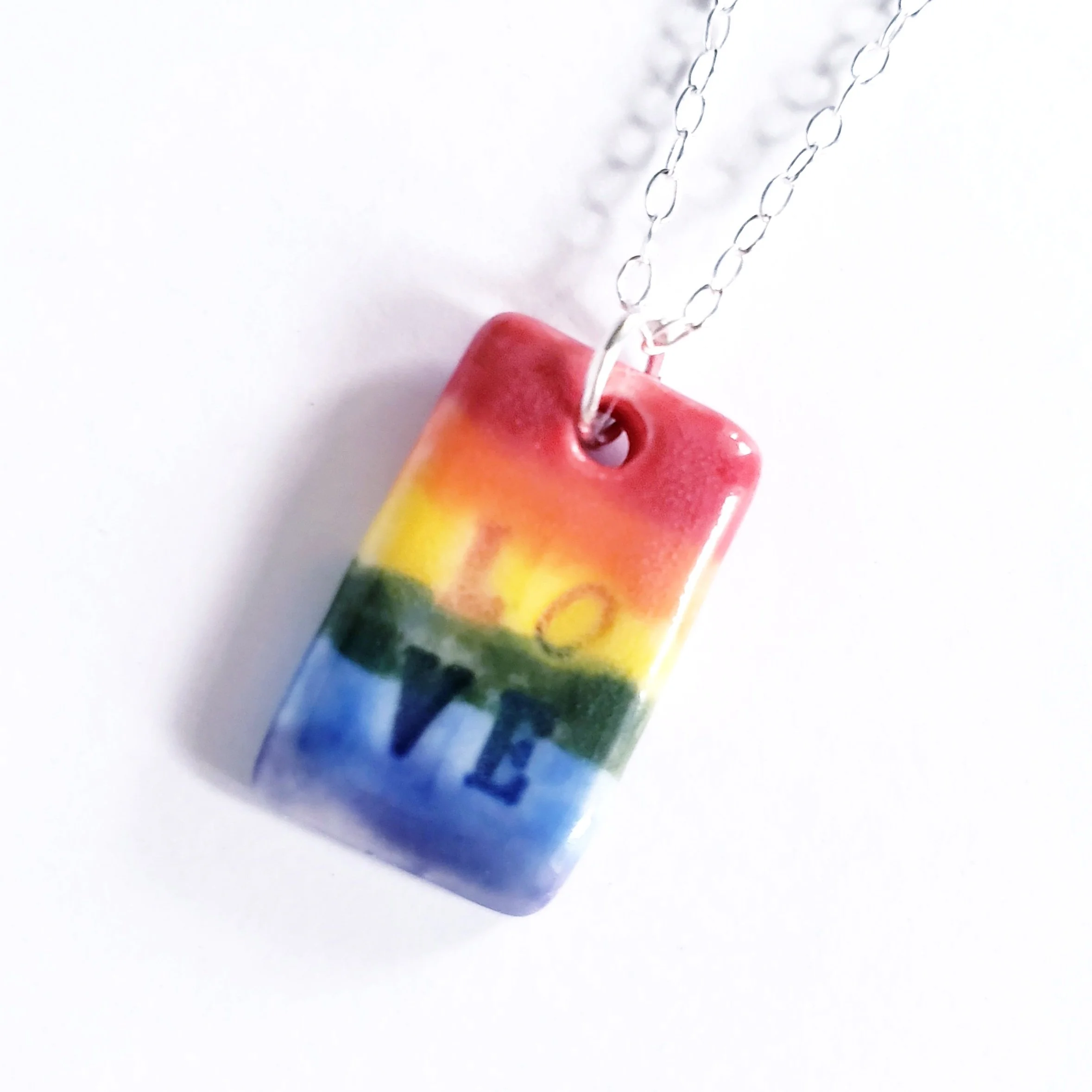 Fine white porcelain pendant hand painted and stamped with LOVE message. Sterling silver 18 inch chain. Each one is unique and not an exact replica of photo.